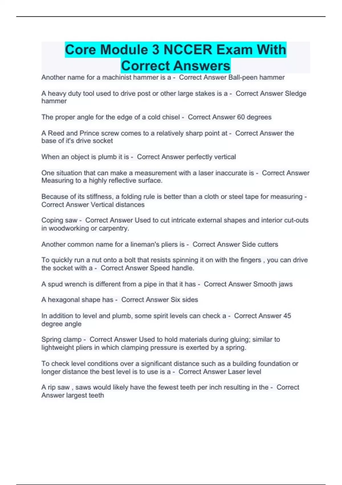 Core Module 3 NCCER Exam With Correct Answers - NCCER - Stuvia US